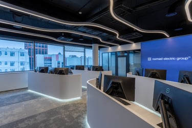 The design for Nomad Electric Group is a modern office in an industrial and hi-tech style.