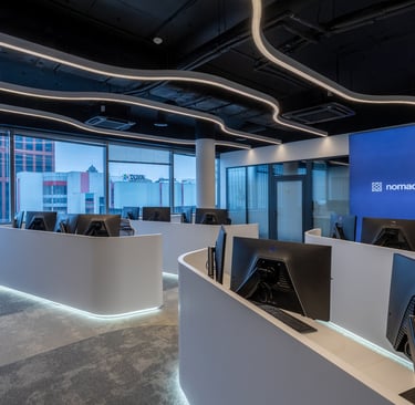 Specialized sound-absorbing materials were integrated throughout the open-plan areas to reduce reverberation and control noise levels.